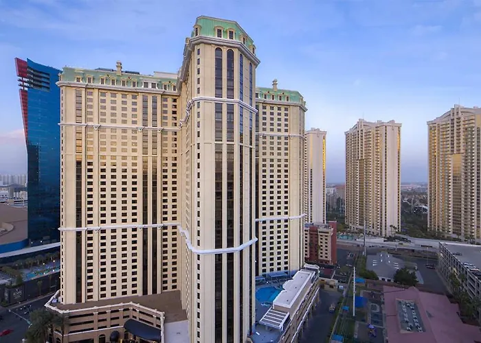 寝室1室のMarriott Grand Chateau Studio Apartment With Resort Access ラスベガス 別荘は、アリアから徒歩でわずか9分に位置し、屋上プールでリラックスしたひとときを過ごすことができます。